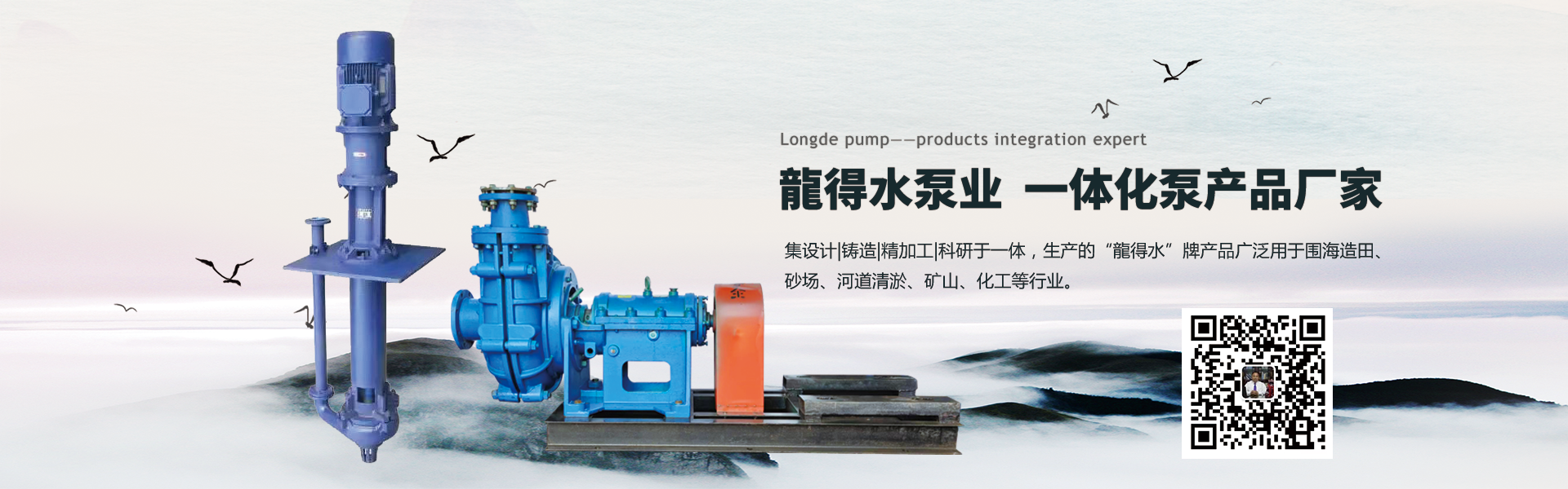 禹州市龍德水泵有限公司集設計、鑄造、金加工、科研于- -體,是一家生產泵產品制造公司。本公司生產的“龍得水”牌產品有: WN(Q)型圍海吹填大型船用挖泥泵, G、GH型大流量河道抽砂船用砂礫泵,EPN. BS型清淤筑堤填海船用高耐磨砂石泵, AH、HH、ZJ(G),ZJ(G)B、 LZ、LY系列渣漿泵,IS系列高壓清水泵,DG、D、MD系列多級清水泵, S、SH型雙吸泵,HW型大流量混流泵, PNJFA PNJB、 PNJFB系列離心式襯膠砂泵, PN、PNL系列高耐磨砂石泥漿泵, PW系列污水泵,PS系列吸沙泵,打井、打樁、壓濾機,加氣磚廠抽水泥立式泵,農用噴灌泵,船用污水泵,船用抽砂泵,不銹鋼系列化工泵,船用掛槳機,浮箱式柴油機型泵用水沖挖藕機,潛水吸砂泵,單缸,雙缸、BW150三缸BW250三缸注漿泵,智能型150三缸注漿泵、智能型250三缸注漿泵,頂管,盾構配套高耐磨砂石、鵝卵石泵等。廣泛用于圍海造田、砂場、河道清淤、礦山、化工、地礦、有色金屬、石油、電業(yè)、煤炭、選礦、陶瓷、非開挖、盾構等行業(yè)。
